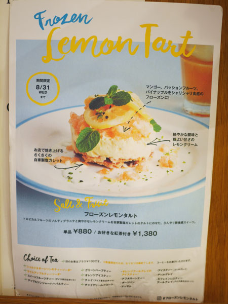 フローズンレモンタルト 好きな紅茶付きで1380円。