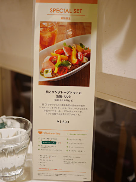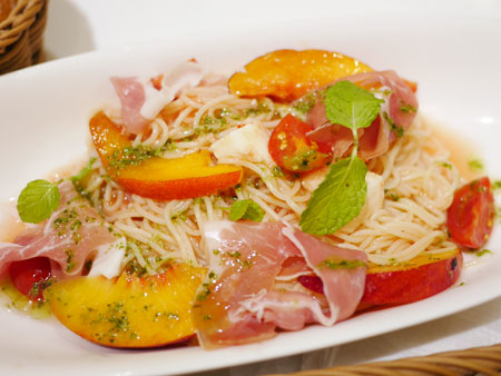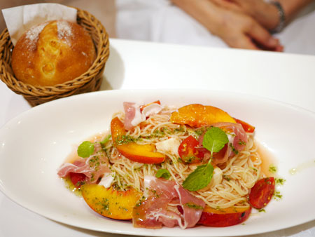 桃とサングレープトマトの冷静パスタ ドリンクセットで1590円