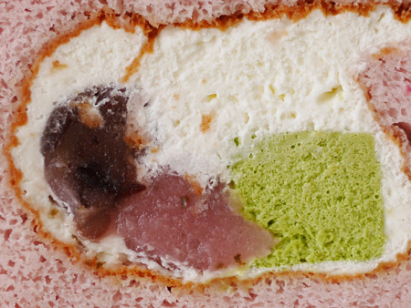 生クリームの中には餡子、桜餡、抹茶ムースが!