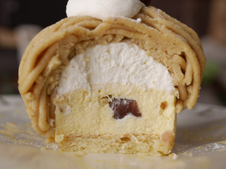 その下に生クリームと刻んだ栗入りのカスタードムース♪