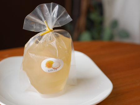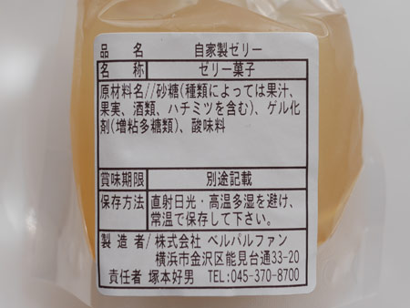 この自家製ゼリーはオレンジ、桃、マンゴーやワインなど何種類かあって、