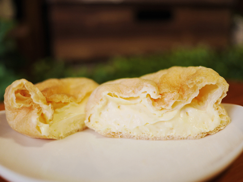 中にたっぷりと檸檬レアチーズ味のクリーム!