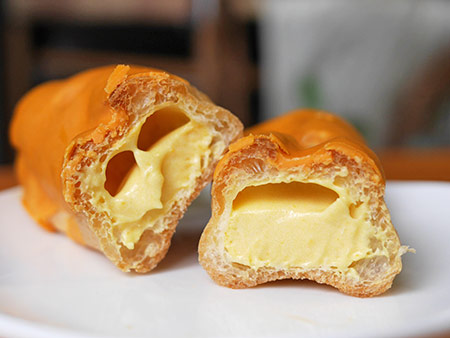 エクレアのシュー生地はふにゃっとしちゃってますが、