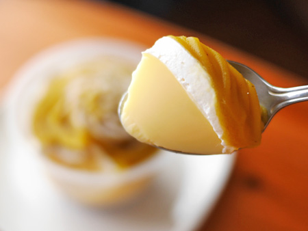 マロンペースト、ホイップクリーム、プリンの層になってます。