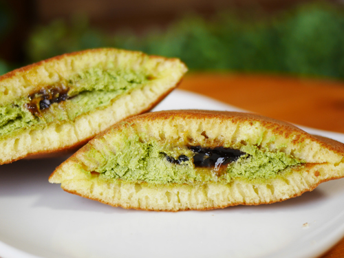 もっちりどら焼きの皮に抹茶ホイップと黒蜜♪