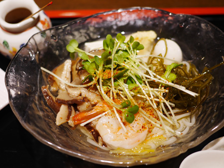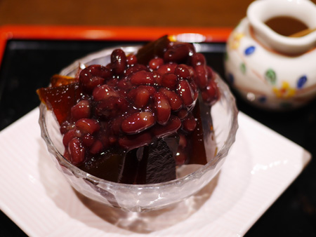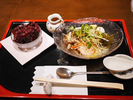 こちらは母の頼んだ稲庭うどんミニと黒糖寒天小豆のせのセット。