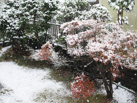 真冬でも雪が降るのは珍しいのに11月に降るなんて異常だわ~。