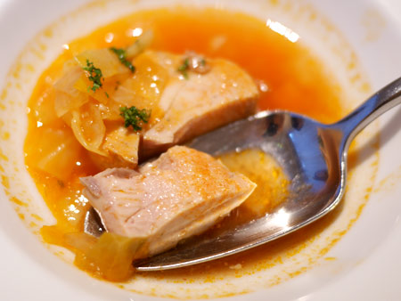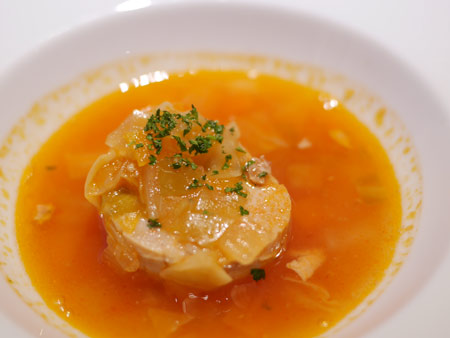 スープがミネストローネでさっぱりしてるので濃厚なあん肝といいバランスですね。