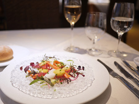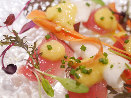 寒ブリのマリネ 京野菜とのコンポジション サフランのビネグレットソース