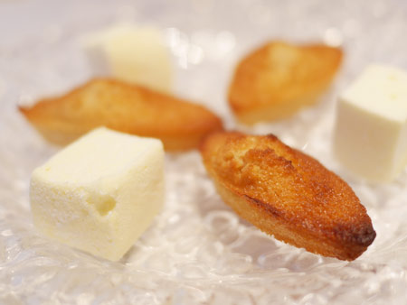 小菓子はパッションフルーツのギモーブとマドレーヌです。