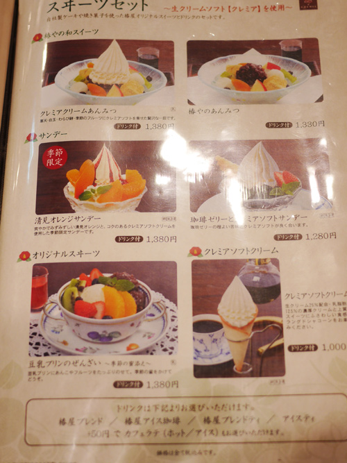 ドリンクは椿屋ブレンド・椿屋アイス珈琲・椿屋ブレンドティ・アイスティ