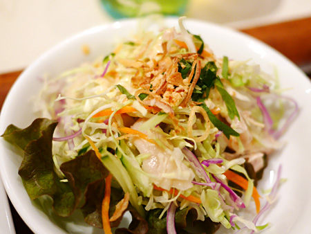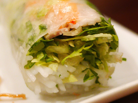 生春巻はレタスときゅうりと大根、それから海老と肉が乗ってます。