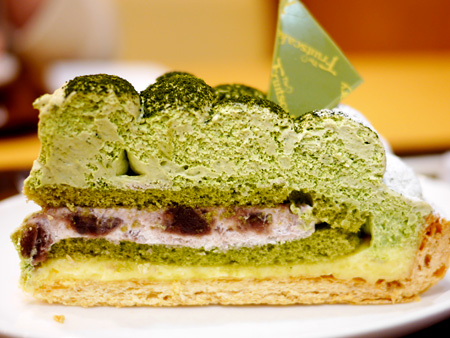 中には抹茶スポンジと小豆の入ったクリーム、底にカスタード。
