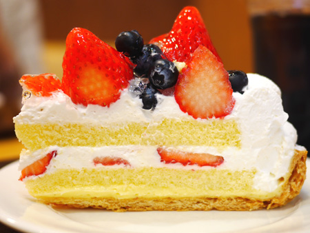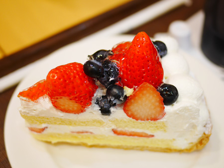 ジュレでコーティングされた苺とブルーベリーがてっぺんに。
