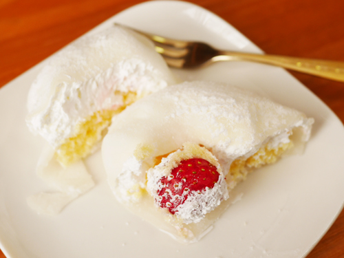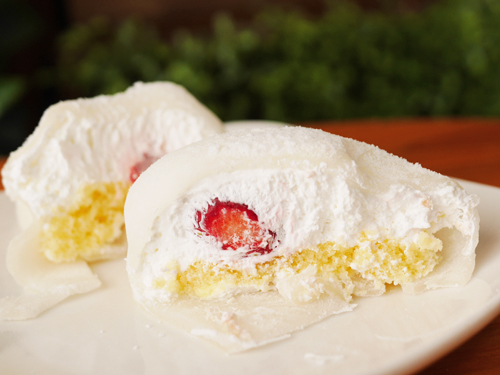 もっちり求肥にたっぷりホイップ、底にスポンジ。