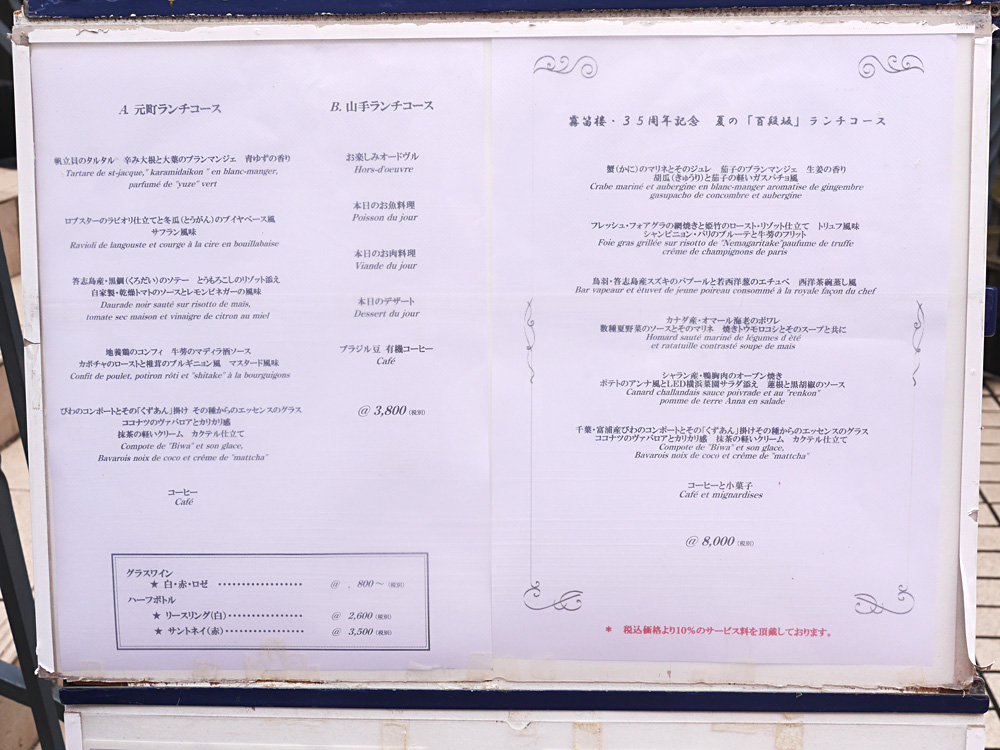 レストラン前にメニューが置いてあります。