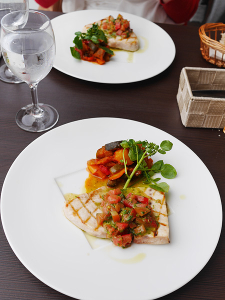 メカジキがまるで肉のようにジューシーで絶妙な焼き加減です。