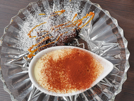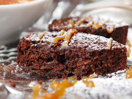 ガトーショコラにはキャラメルソースがかかってます。
