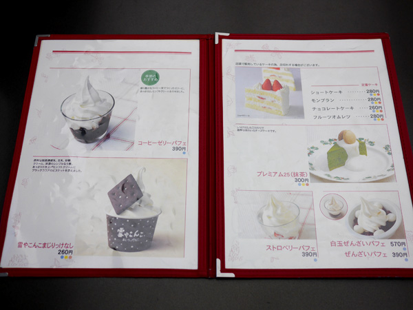 カフェメニューはこんな感じ。