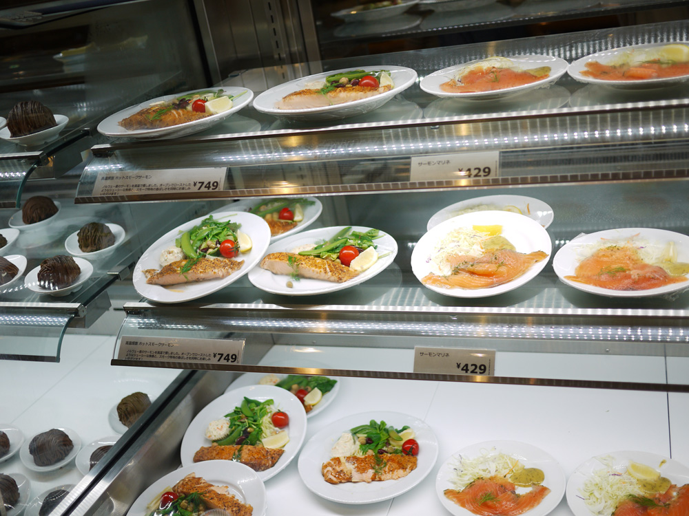 左の、ホットスモークサーモン・・・冷蔵コーナーに置いてちゃなんか台無しのような(笑)
