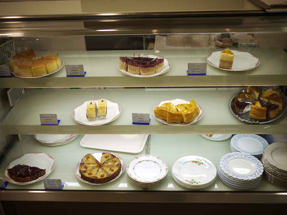 ショーケースには懐かしさを感じるケーキが並んでます。