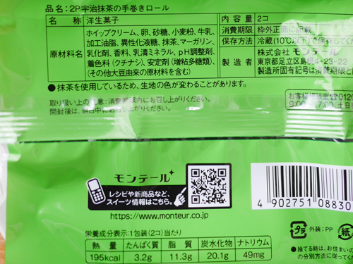 モンテールの「宇治抹茶の手巻きロール」約100円