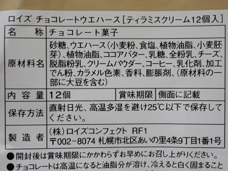 ロイズのチョコレートウエハース・ティラミスクリーム