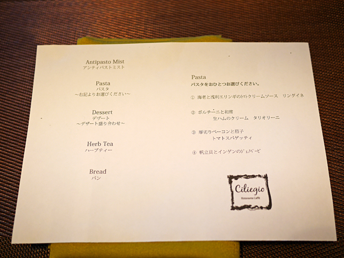 Ristorante Caffe Ciliegio(リストランテ カフェ チリエージョ)で頂きます。