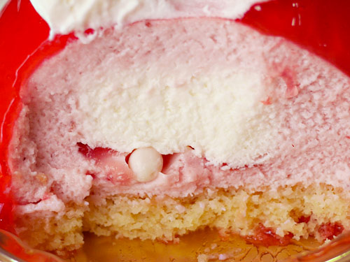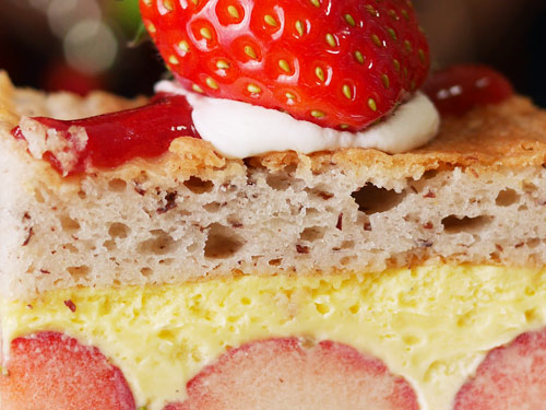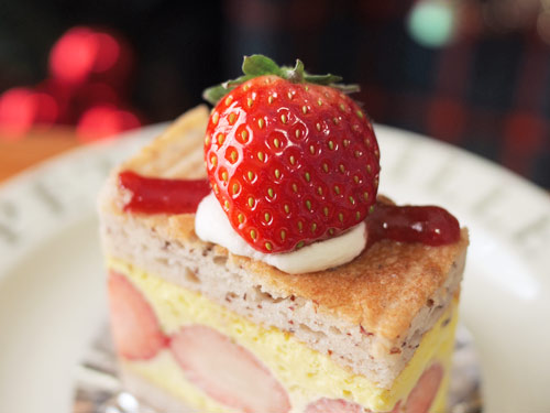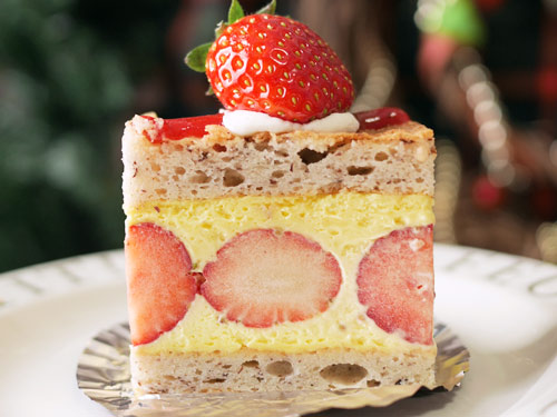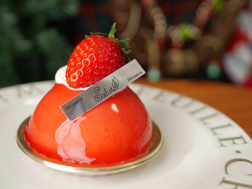 大きな苺がてっぺんに、外側に甘い苺ジュレがコーティングがしてあります。